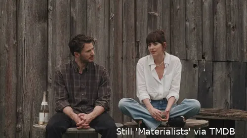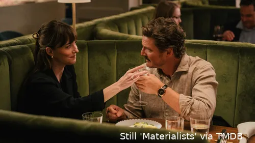 de film bij elkaar te houden. Materialists twijfelt: wil het een satire